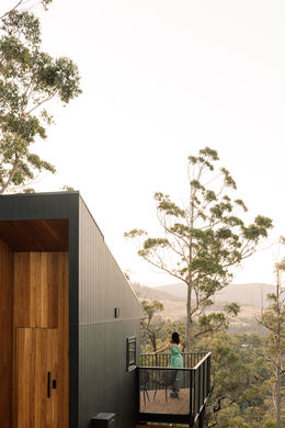 Three luxurious cabins set amongst acres of private bushland overlooking the stunning Huon Valley